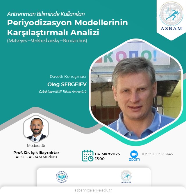 Merkezimizin 04 Mart 2025 Salı günü düzenlediği webinarın konuğu Ukraynalı olimpik antrenör Oleg Sergeiev oldu. Sergeiev, Türkiye Atletizm Federasyonunda 2015-2022 yılları arasında sözleşmeli antrenör olarak çalıştı. 2022 yılından bu yana Özbekistan Atletizm Milli Takım Antrenörü olarak çalışmaktadır.
