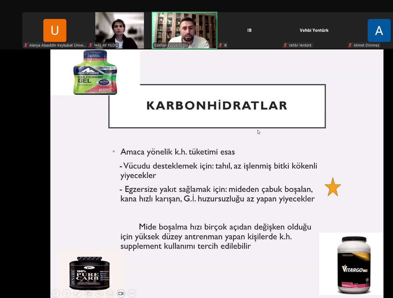 Webinarda, sporcu sağlığı ve performans artışına yönelik bilimsel yaklaşımlar ele alındı. Etkinliğin moderatörlüğünü ALKÜ Spor Bilimleri Fakültesi öğretim üyesi Dr. Öğr. Üyesi Yeliz Ay Yıldız üstlendi. Webinara konuşmacı olarak Sağlık Bilimleri Üniversitesi Tıp Fakültesi öğretim üyesi Dr. Öğr. Üyesi Gökhan Büyüklüoğlu katılım sağladı.